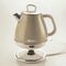 Электрический чайник объемом 1 л выполнен в винтажном стиле, благодаря чему украсит интерьер кухни в любом современном дизайне. Корпус изделия изготовлен из нержавеющей стали, поэтому устойчив к коррозии, температурным перепадам, деформации и механическим повреждениям. Модель вращается на подставке на 360°. Прибор автоматически отключается при закипании и снятии с платформы. Устройство подключается к сети через шнур длиной 1 м.