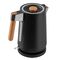 Беспроводное соединение позволяет вращать чайник на подставке на 360 градусов, Корпус из нержавеющей стали, Ручка из натурального дуба, Английский контроллер STRIX, Автоотключение при закипании воды, Шкала уровня воды, Защита от перегрева, Скрытый нагревательный элемент, Съемный фильтр-сетка для защиты от накипи, Отсек для хранения шнура