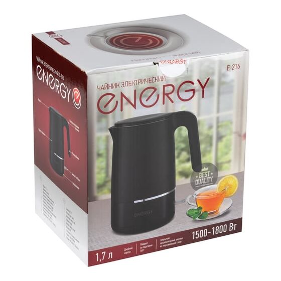 Чайник ENERGY E-216 1.7 л черный 164155 предназначен для использования в офисе или дома.