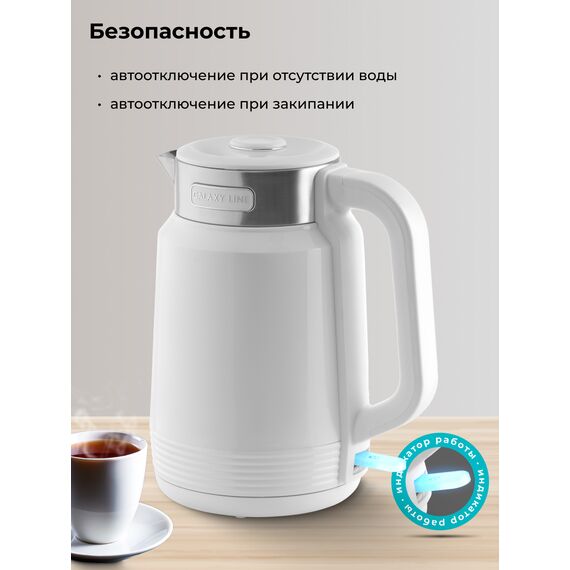 сохраняя воду горячей долгое время. Об этот чайник невозможно обжечься, его не нужно часто подогревать, что обеспечивает безопасность и экономию электроэнергии.