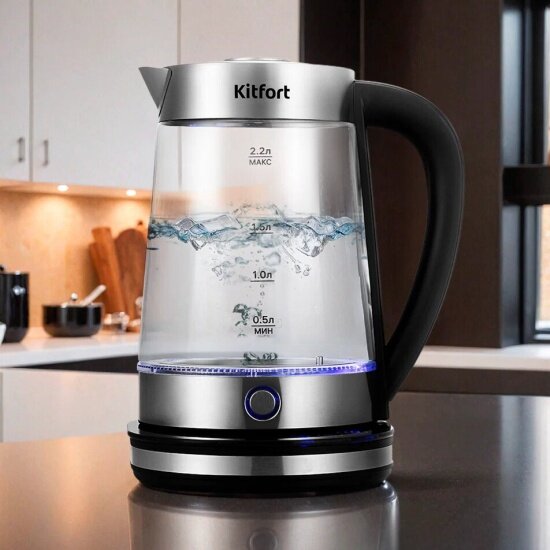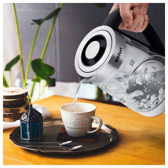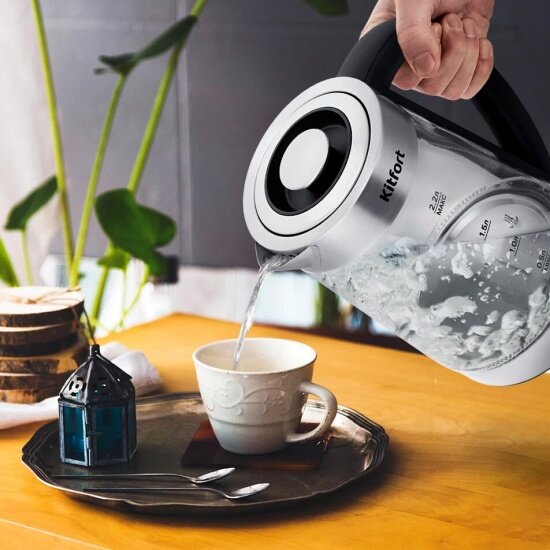 Электрический чайник с электронным терморегулятором Kitfort КТ-6764 может не только вскипятить воду, но и нагреть ее до температур: 65, 80, 90, 95 и 100 °С, что очень удобно при заваривании различных сортов чая и приготовления детского питания.