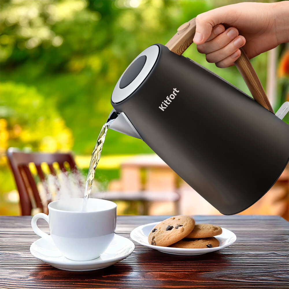 Чайник Kitfort КТ-6792 предназначен для кипячения воды дома, в офисе, на даче. Ручка чайника пластиковая, не нагревается и удобно лежит в руке. Полный чайник закипает примерно за 5 минут.