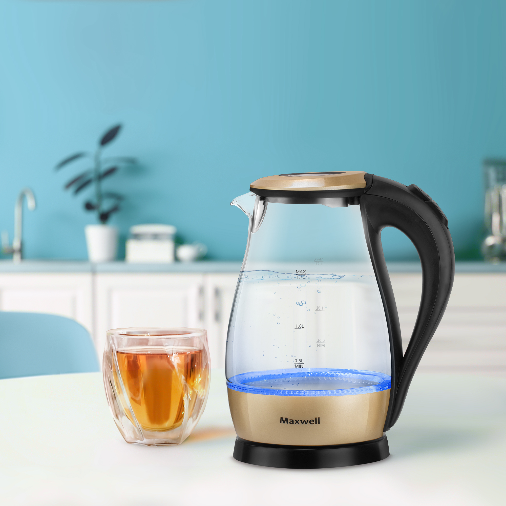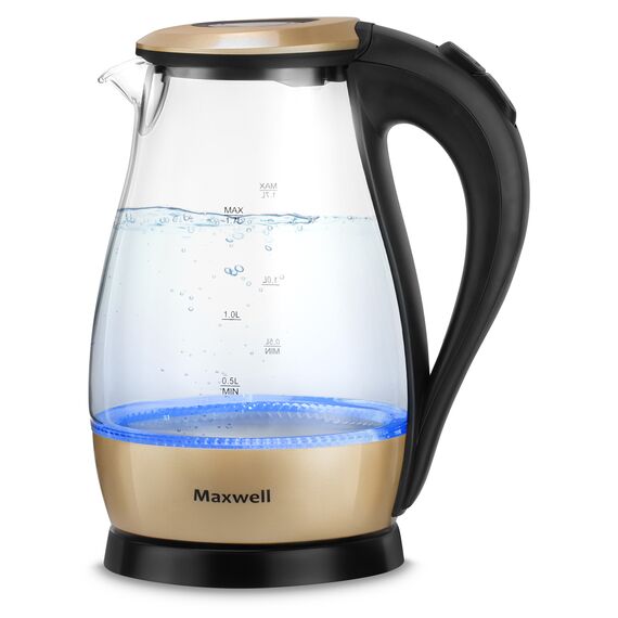 Сделать семейное чаепитие особенно приятным позволит чайник MAXWELL MW-1041 GD объемом 1,7 л. Его корпус, изготовленный из экологического термостойкого стекла, имеет внутреннюю подсветку красивого голубого цвета. Нейлоновый фильтр надежно задерживает накипь: при необходимости его можно легко снять и промыть. Чтобы наполнить чайник водой, откройте его, нажав специальную кнопку, расположенную на крышке.