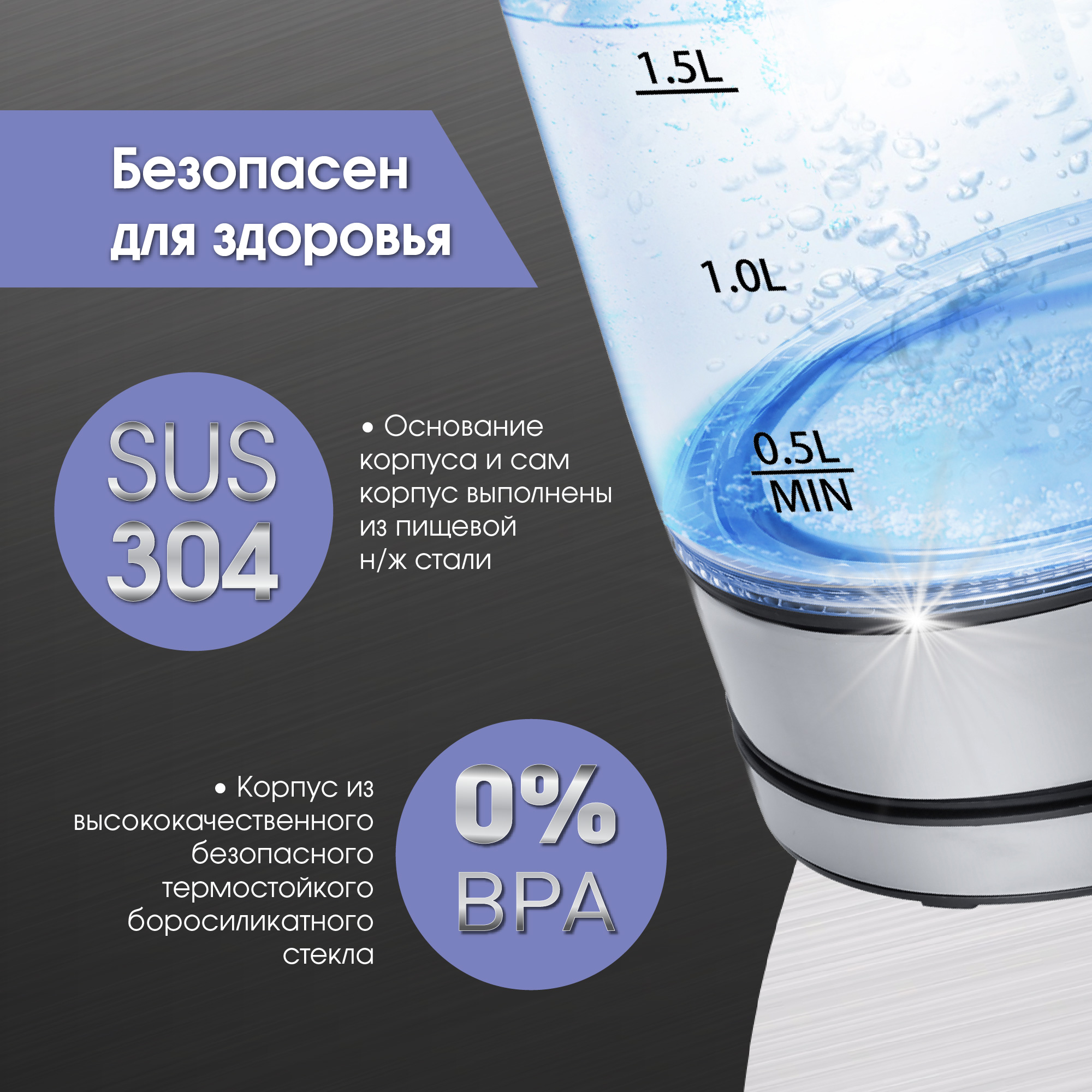 Материал корпуса нержавеющая сталь/термостойкое боросиликатное стекло