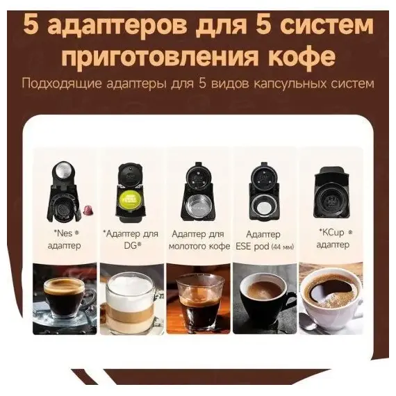 Капсульная кофемашина 5 в 1 HiBREW AC-514K. Вам больше не нужно идти в кафе, когда хочется бархатистого, ароматного кофе. С HiBREW вы можете легко приготовить его дома! Также выбирайте объем чашки: маленькая – 150 мл и большая – 250 мл.