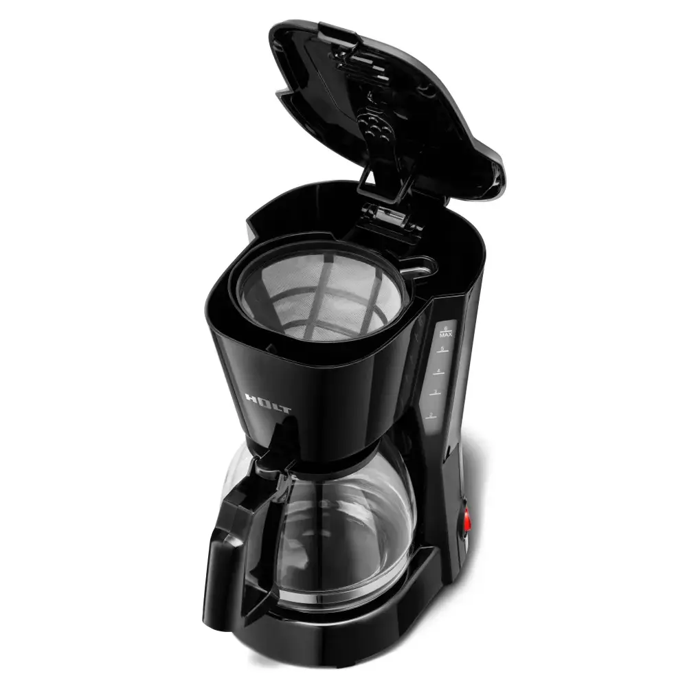 Электрическая кофеварка HOLT капельного типа мощностью 600 Вт предназначена для варки вкусного ароматного кофе и чая. Компактный размер позволяет разместить маленькую черную кофеварку на небольшой кухне в доме или офисе.