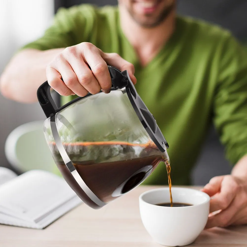 Управление кофеваркой осуществляется всего одной кнопкой на боковой панели. От вас потребуется лишь засыпать кофе в фильтр, а остальной процесс заваривания прибор выполнит сам.