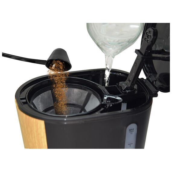 Стеклянный кувшин ёмкостью 1,25 л позволяет получить одновременно 10 порций кофе. По окончании работы, кофеварка поддерживает режим подогрева в течение 60 минут. Для этого необходимо оставить кувшин с напитком на подставке подогрева, убедившись, что кнопка включения находится в режиме работы. Для приготовления кофе с максимально насыщенным ароматом рекомендуется использовать зерна мелкого помола.