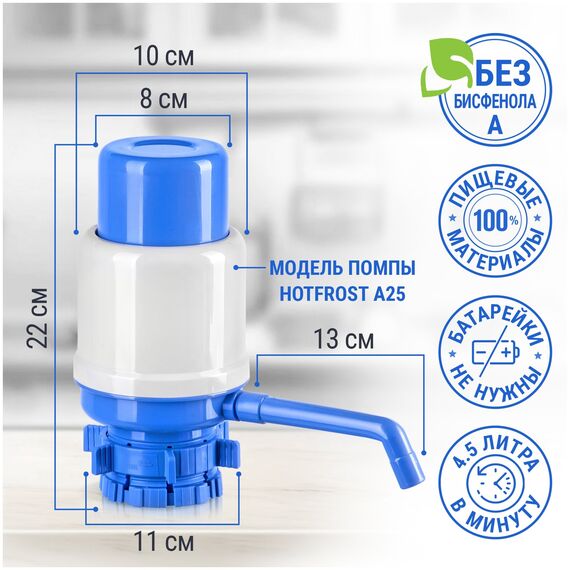 Помпа Hotfrost A25 (230402502) для 19л бутыли механический серый/синий картон