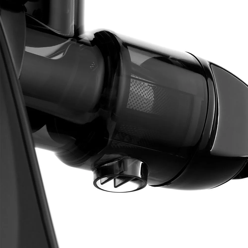 Суперпрочный отжимающий шнек из современного и экологичного пластика, выдерживающего большие нагрузки, тщательно измельчает продукты, а затем продавливает их через отверстие в фильтре.