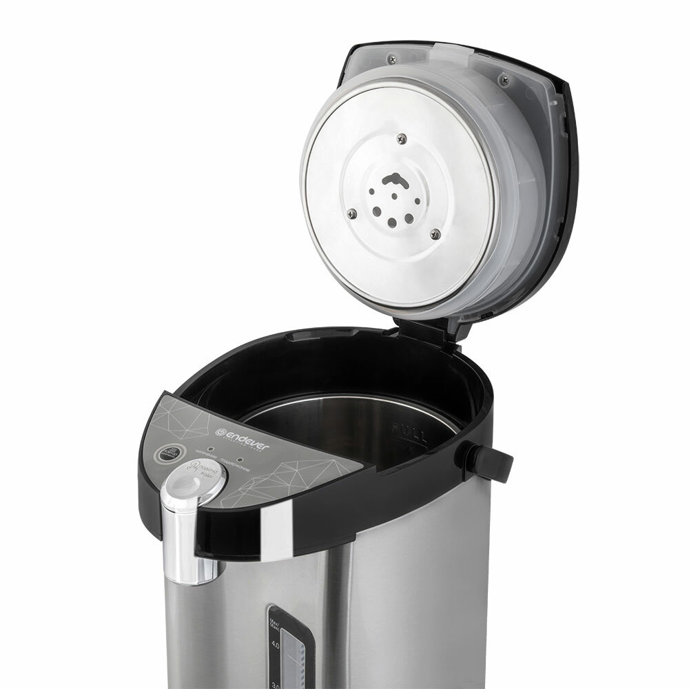 3 способа розлива воды: касанием кружки кнопки у носика, нажатием кнопки на панели, нажатием помпы на крышке, Температура нагрева воды: 95-100°C, Функция поддержания температуры, Функция повторного кипячения, Индикатор уровня воды, Блокировка включения без воды и блокировка крышки, Материал колбы: нержавеющая сталь, Тип нагревательного элемента: открытый, Съемная крышка, Вращение на основании на 360°, Удобная ручка для переноски