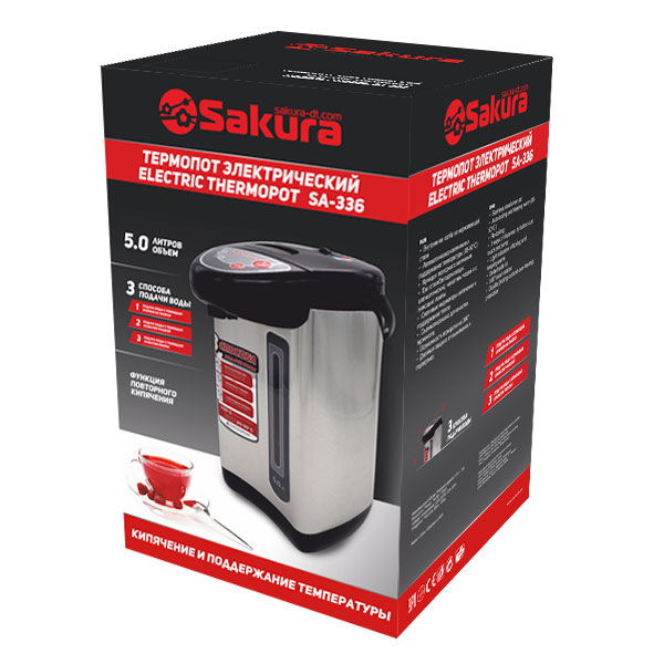 Термопот SAKURA SA-336RS 5,0л метал/красн
