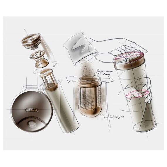 Гаджет от Kiss Kiss Fish имеет элегантные очертания. Вместе с тем, такая форма имеет функциональное предназначение: она удобно ложится в руку, когда вы льете из кружки напиток. Корпус выполнен из нержавеющей стали, которая устойчива к окислению. Все элементы легко моются.