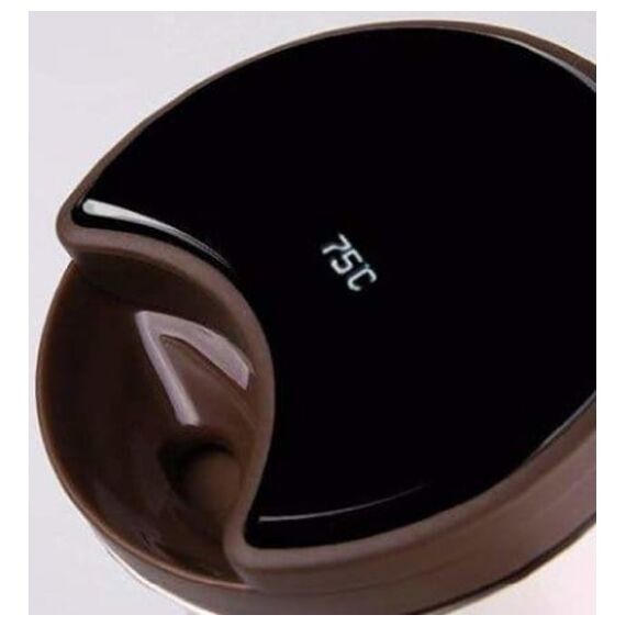 Модель имеет OLED дисплей, который отображает текущую температуру и то, сколько времени прошло после наполнения термокружки. Управлять сенсорным экраном очень просто: переключение между показом времени и температуры происходит с помощью движения пальцем вправо и влево. Источник питания – CR2032 батарейка. Она не входит в комплект.