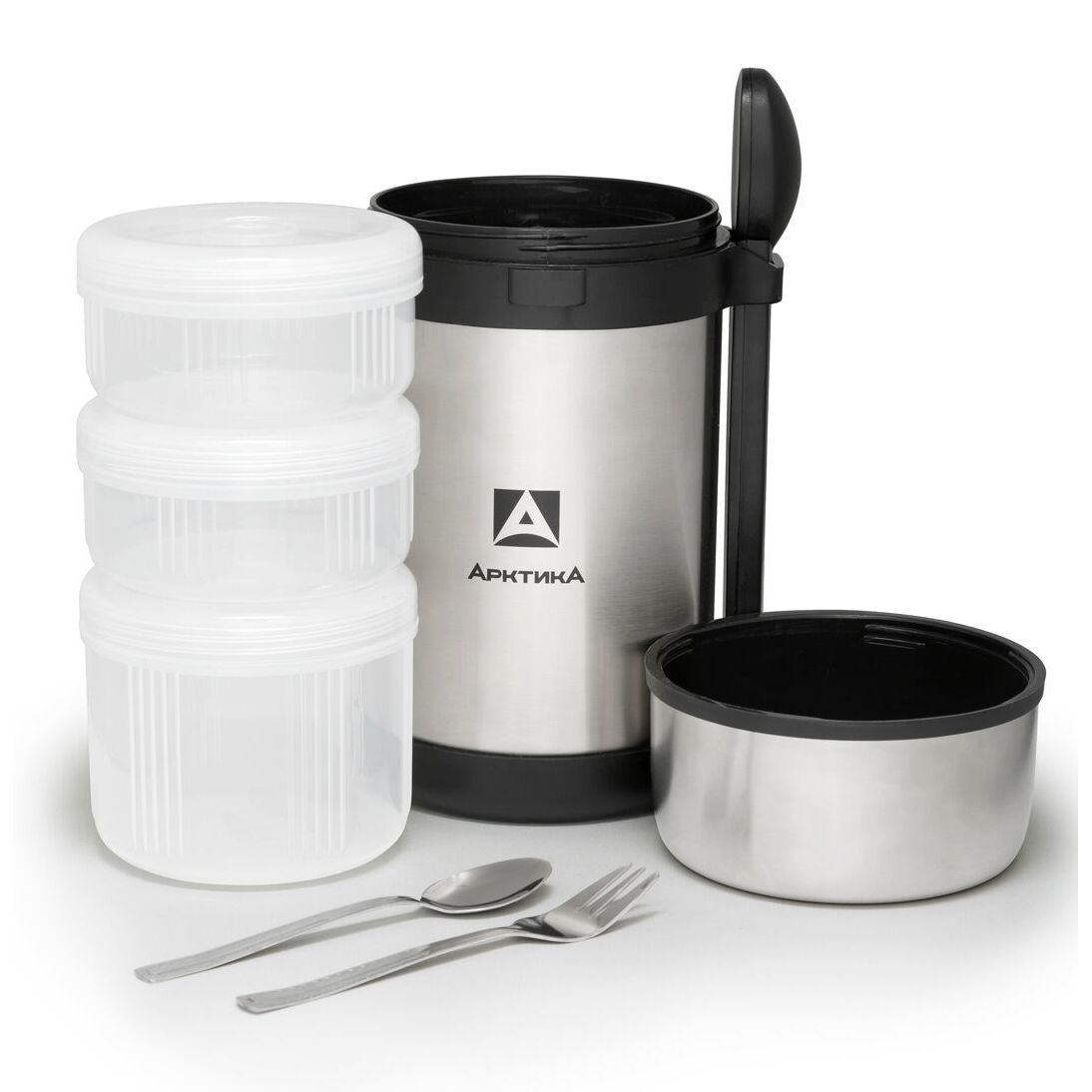 Комплектация: Контейнеры для еды 3шт., приборы (вилка, ложка)