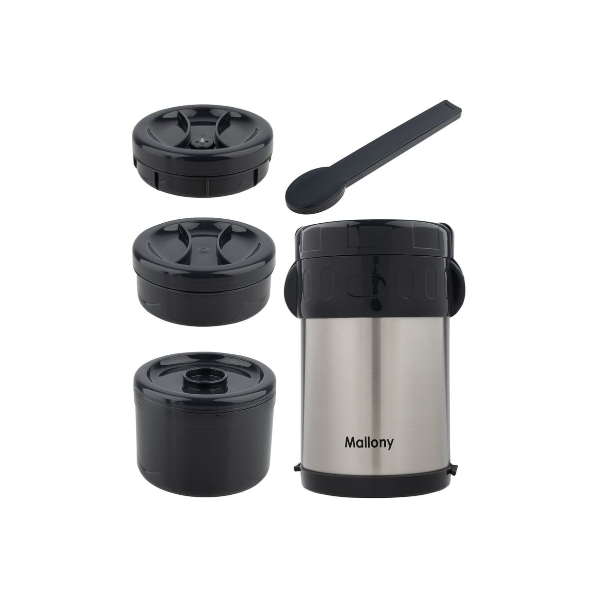 В комплект входят три контейнера с крышкой (270, 350 и 620 мл) и контейнер для столовых приборов.