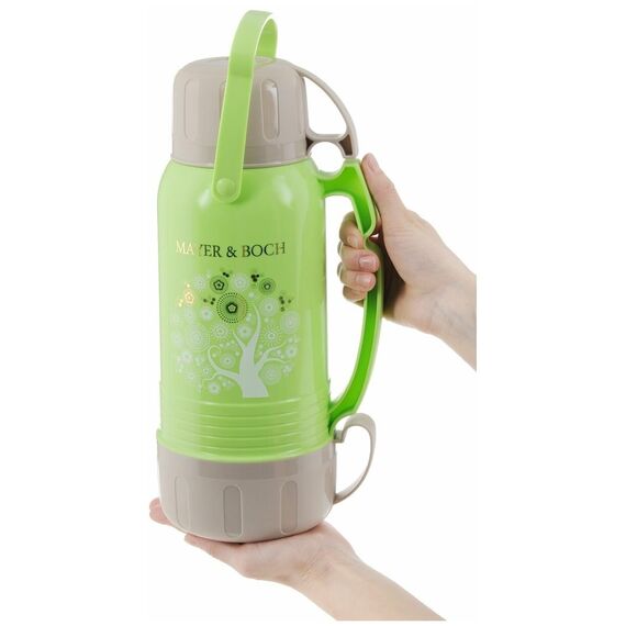 Термос MAYER&BOCH с цветным пластиковым корпусом и стеклянной внутренней колбой, является самым востребованным среди покупателей. По своим теплообменным характеристикам термос со стеклянной колбой не уступает термосам со стальными колбами, но благодаря свойствам стекла, в него можно наливать напитки с сильными, устойчивыми ароматами. Термос оснащен двумя удобными ручками, одна из которых предназначена для его переноски. Завинчивающаяся герметичная крышка предохраняет от проливаний. В комплекте с термосом идут 3 пластиковые кружки. Термос способен сохранять необходимую температуру до 24-х часов. Легко и просто моется. Термос MAYER&BOCH пригодится в любой ситуации: будь то поход, поездка или просто чаепитие.