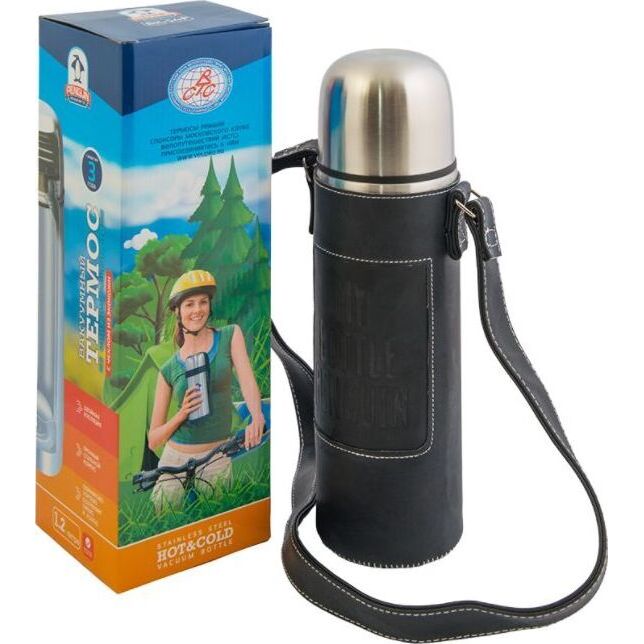 Термос для напитков объемом 1,2 литр с теплоотражающим чехлом из качественной экокожи. Чехол в этой модели выполняет множественные функции - от защитно-декоративной до теплосберегающей.