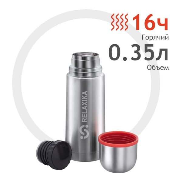 Классический термос Relaxika с высокими показателями удержания температуры напитка для походов, путешествий, спорта и ежедневного использования. Прочные двойные стенки из высококачественной нержавеющей стали 18/8 с вакуумной изоляцией гарантируют, что ваш напиток останется холодным в течение 22 часов и горячим до 16 часов. Этот материал не только прочен, но и гигиеничен, не выделяет никаких вредных для здоровья веществ. Ваши напитки сохраняет естественный вкус и не приобретут посторонний запах.
