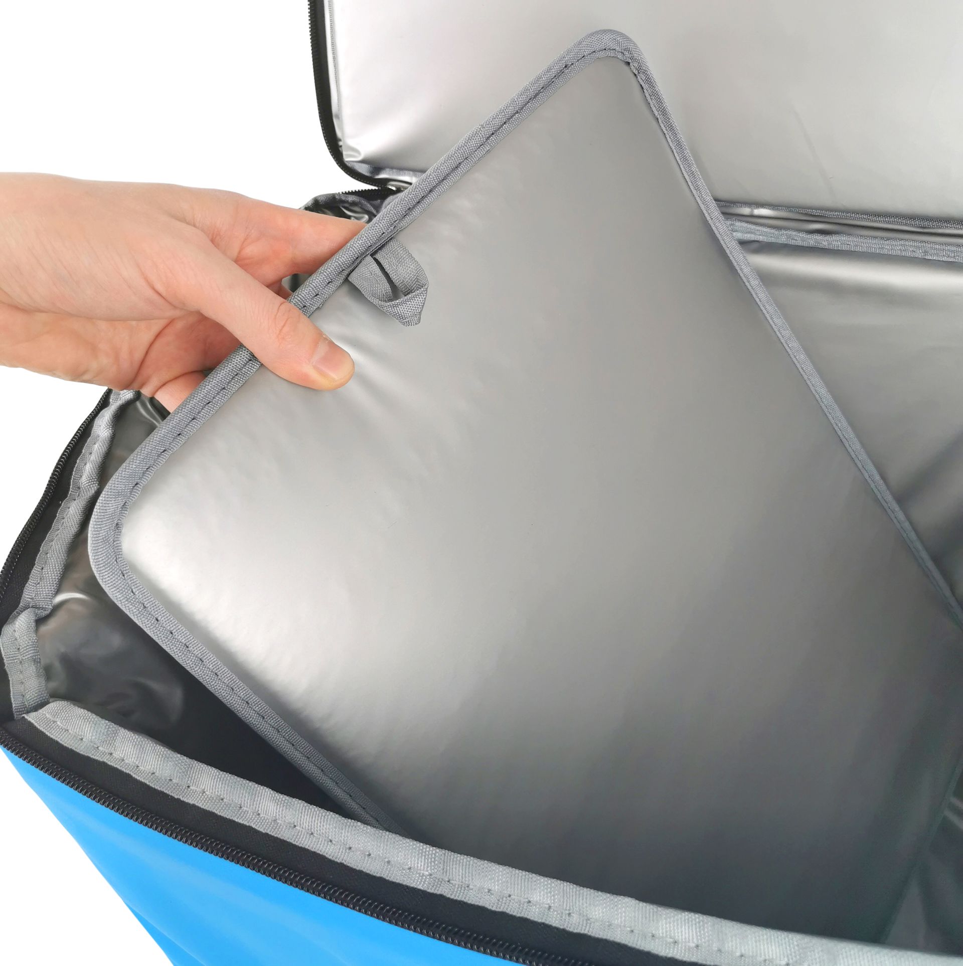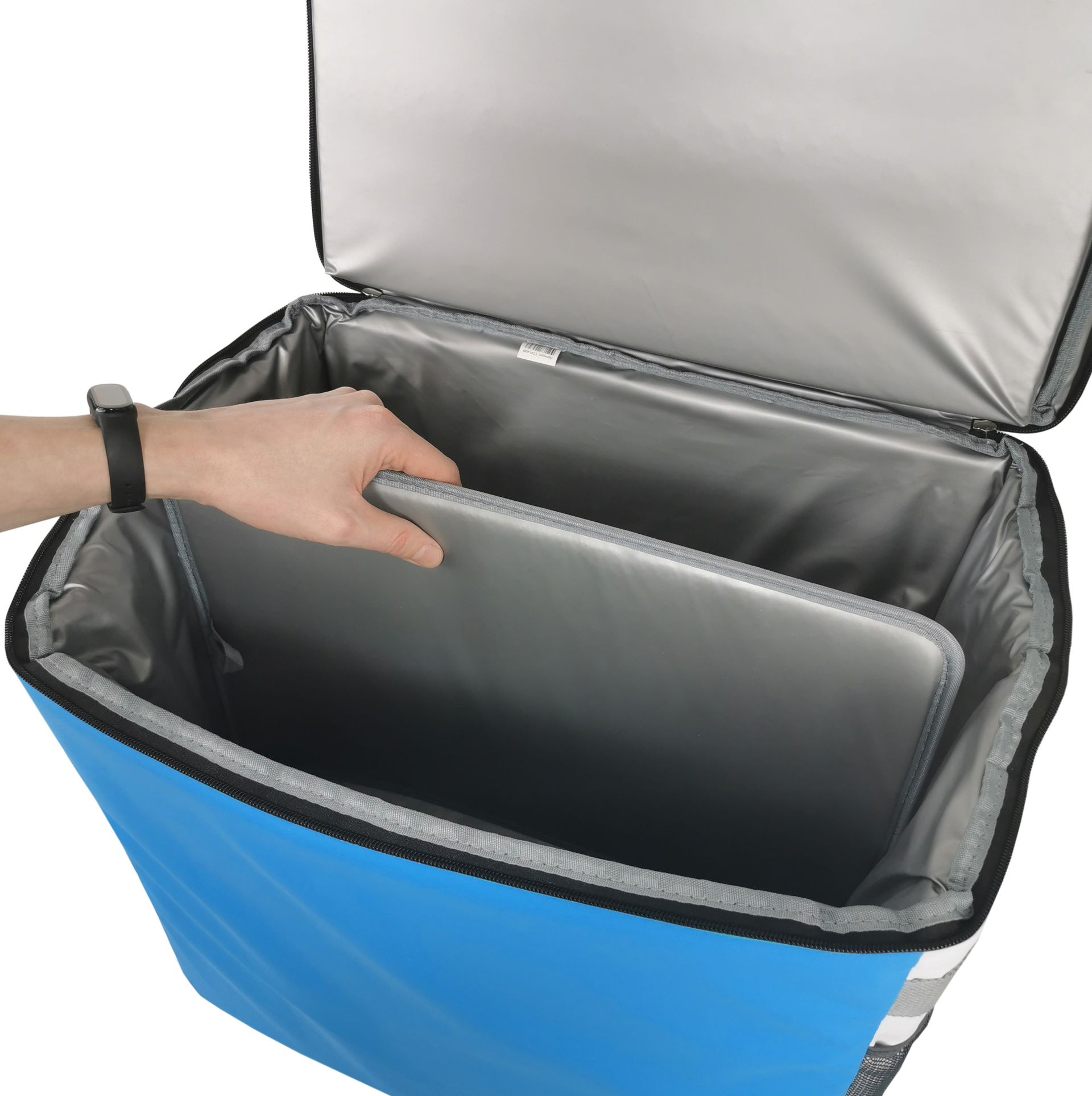В термосумке с увеличенным объёмом (40 л) предусмотрено съёмное дно с дополнительной термоизоляцией для поддержания формы или для создания отделов внутри сумки. Дополнительно на ремне предусмотрена мягкая накладка на плечо и боковые ручки для удобной переноски.