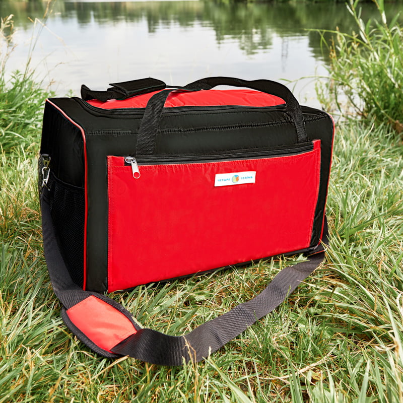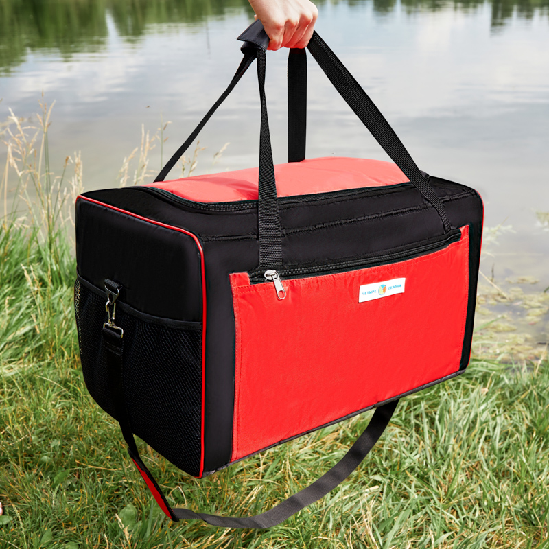 Термосумка представляет собой дорожный аксессуар, который позволяет сохранять температуру продуктов в течение длительного времени. С внешней стороны сумка покрыта прочной и влагостойкой тканью, а с внутренней – фольгированным материалом, обладающим высокими теплоизоляционными свойствами. Имеет два слоя утепления, что увеличивает время сохранения холода/тепла внутри контейнера. Аксессуар оснащен специальным внутренним карманом для аккумулятора холода. Термосумка оборудована прочным ремнем и усиленными ручками, за счет чего ее комфортно и удобно носить плече и в руках. Объем холодильного отсека 45 литров.
