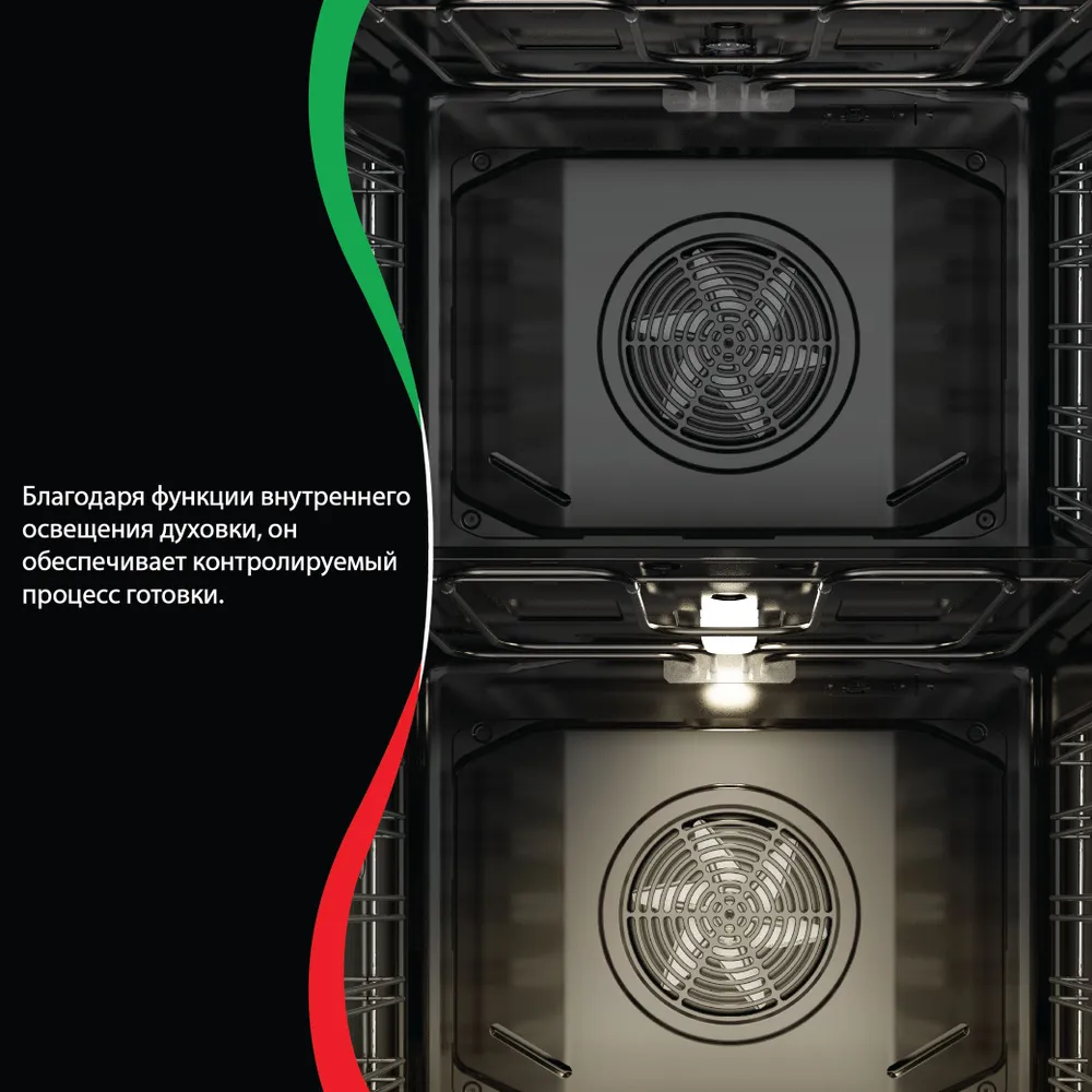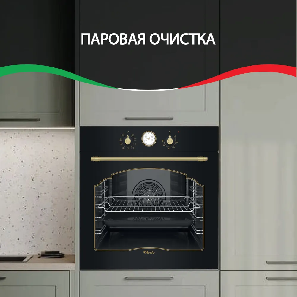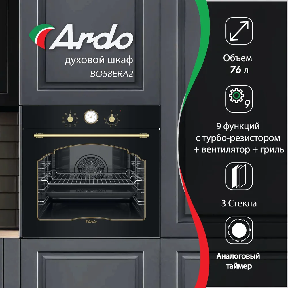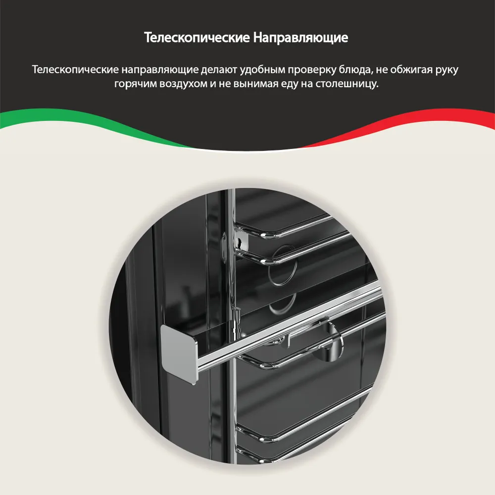 Особенности духовки, плиты: Дизайн Ретро, Вентилятор охлаждения, Встроенные часы, Хромированные направляющие