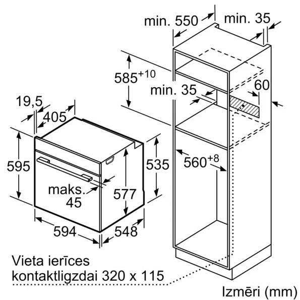 Габариты ниши для встраивания (В х Ш х Г), см 58.5-59.5 x 56-56.8 x 55