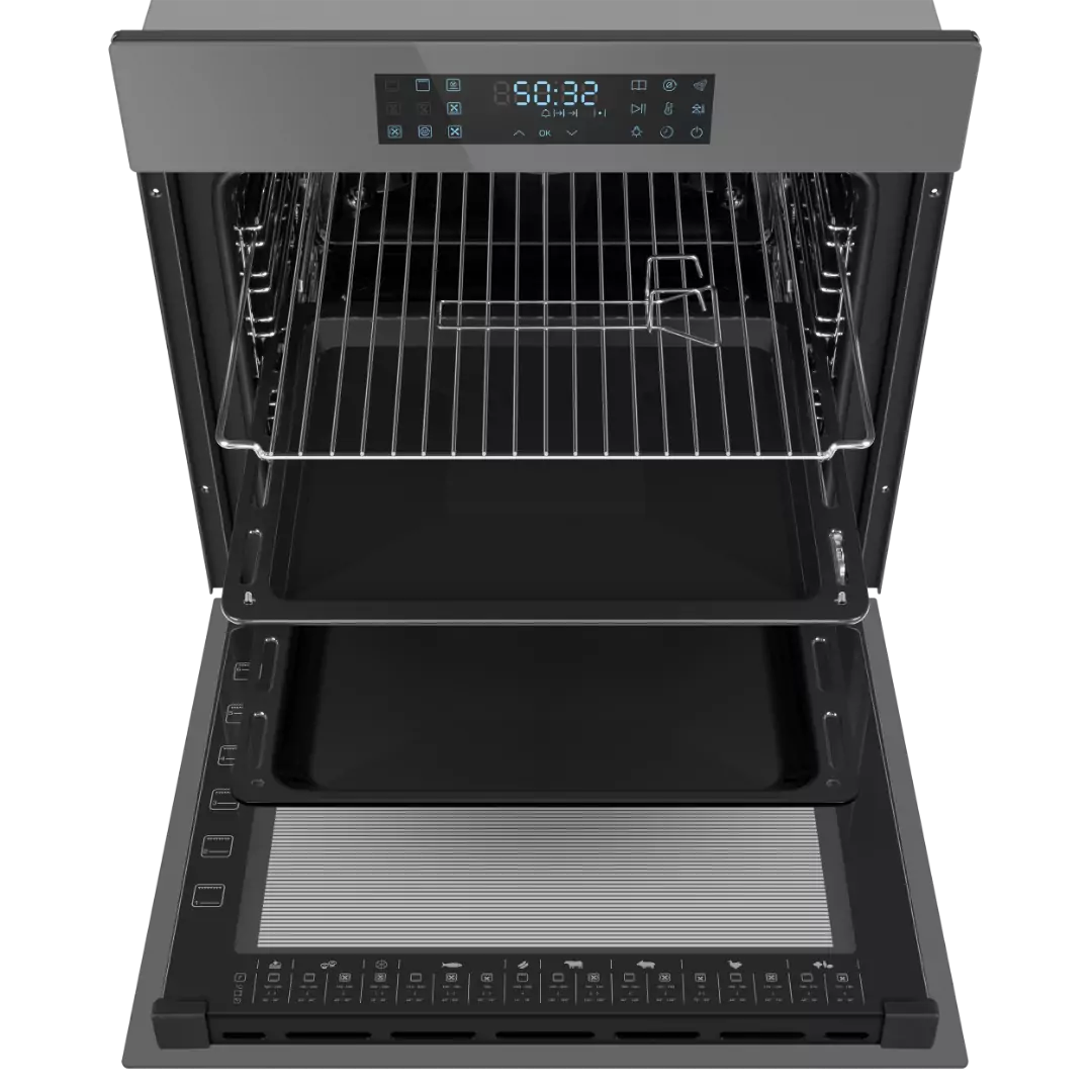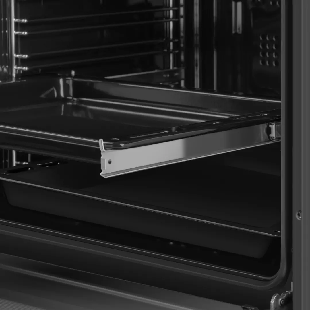 Удобная и безопасная установка противня и его извлечение. Телескопические направляющие облегчают использование духовки: противень не упадет, даже если выдвинут полностью.