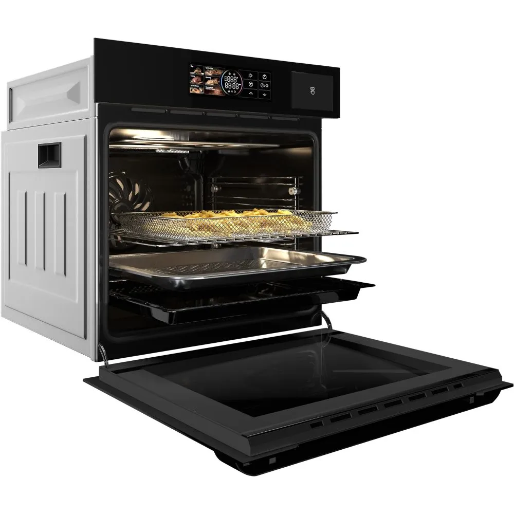 Особенности духовки, плиты: Встроенная книга рецептов, Встроенный парогенератор, Дисплей, Полностью стеклянная внутренняя дверца, Хромированные направляющие