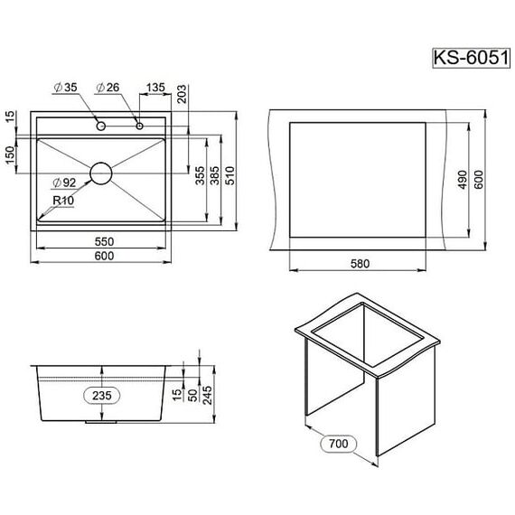 Мойка GRANULA 6051 нержавеющая сталь, сталь сатин