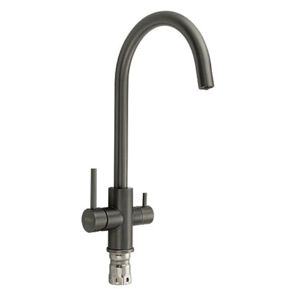 Смеситель для кухонной мойки и раковин с двойным выпуском воды для фильтра, литой корпус, цвет ГРАФИТ, из нержавеющей стали марка 304, с высоким С-образным изливом, шаровый,