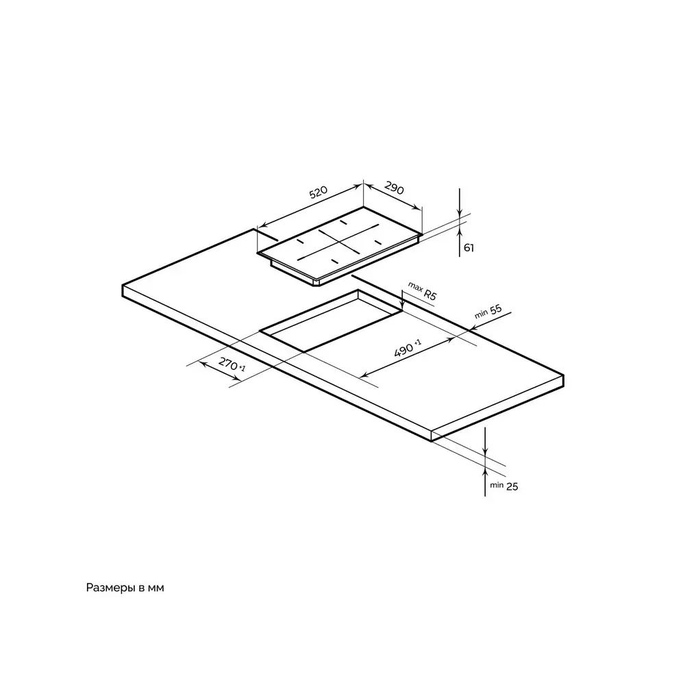 Размеры ниши для встраивания панели, мм