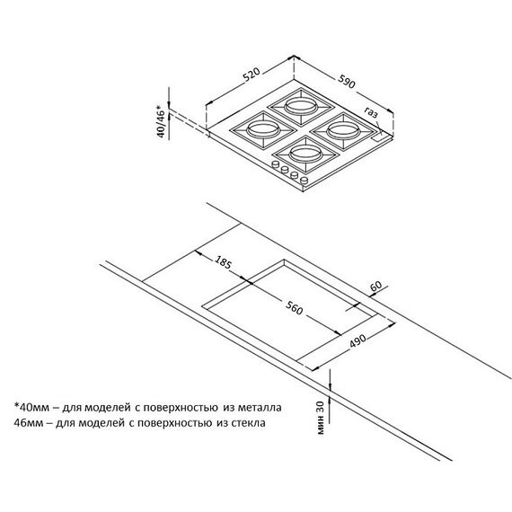 Размеры для встраивания (ШхГ)560x490 мм