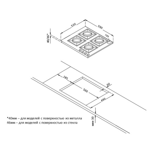 Габариты ниши для встраивания (Ш х Г), см 56 х 49