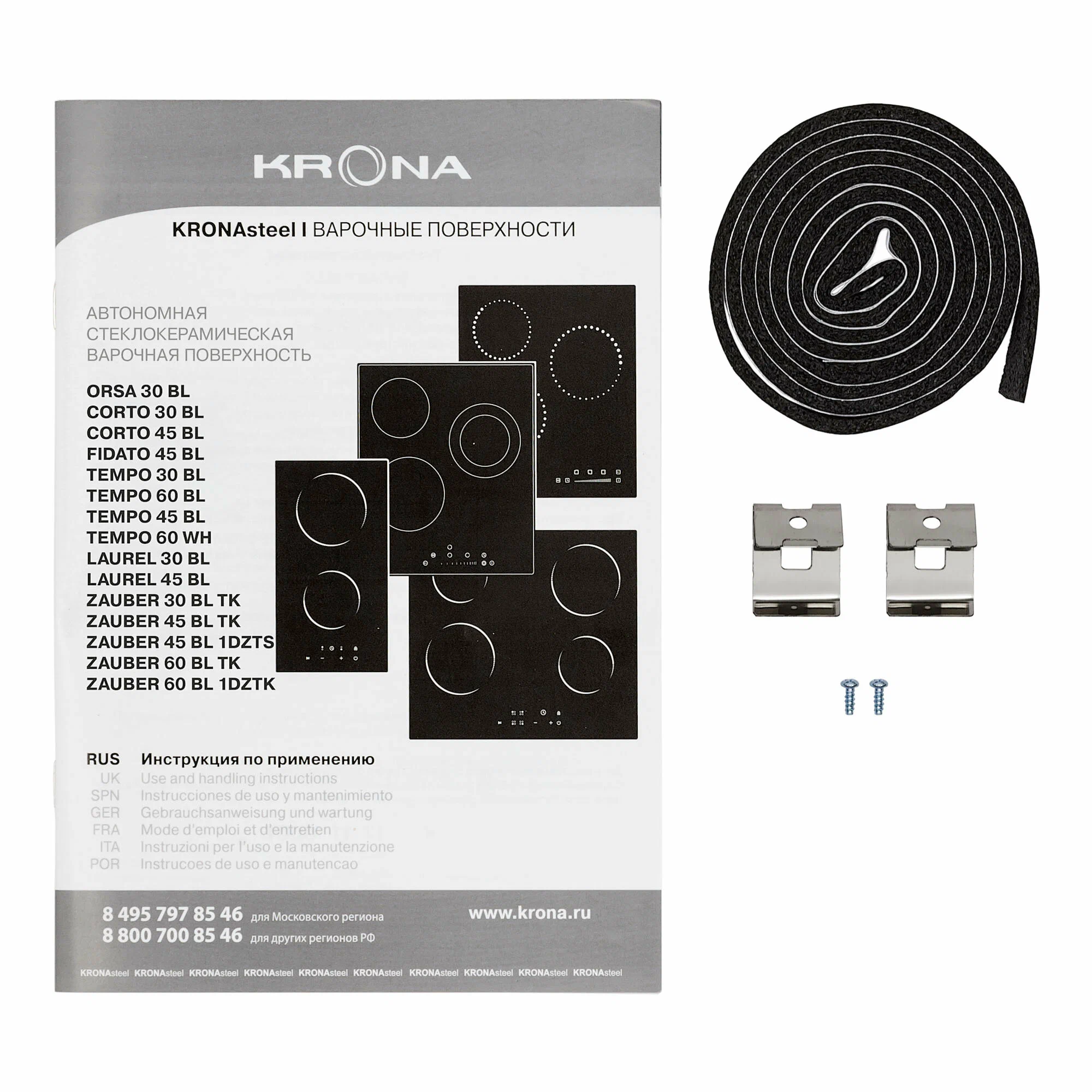 защитное отключение конфорок, индикатор остаточного тепла, кнопка блокировки панели
