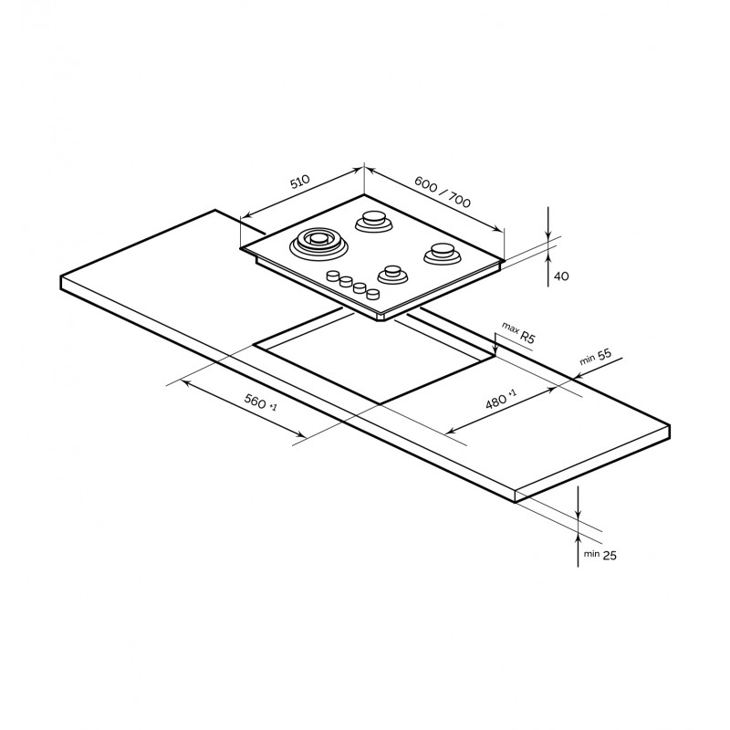 Размер для встраивания (ВхШхГ) 560х480 мм