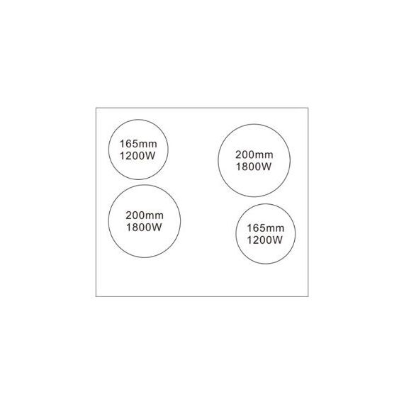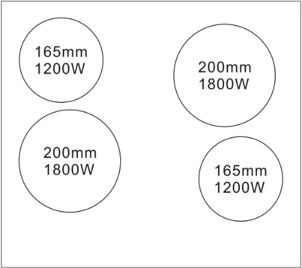 Правая дальняя конфорка: мощность 1800 Вт размер200 мм