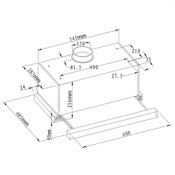 Размеры встраивания (ШхГxВ) (мм): 545x485(ширина х глубина, мм), Мин. Высота над электр./газовой плитой: 65 / 75