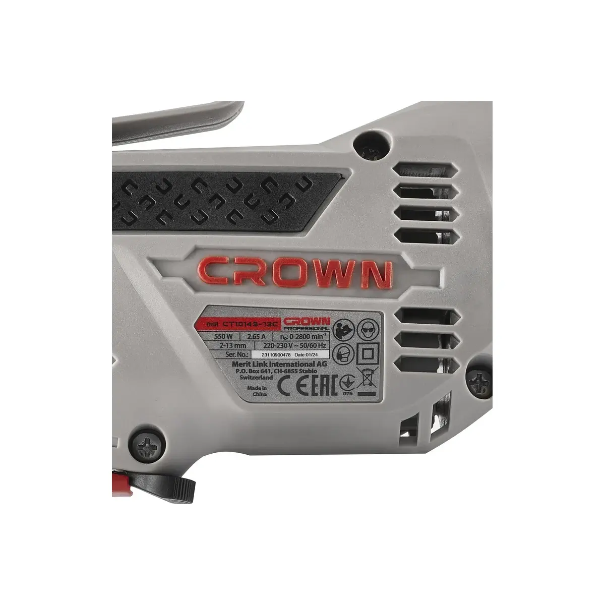 Для работ с разными материалами и с разнообразной оснасткой, дрель Crown CT10143-13C оснащена регулировкой частоты вращения с помощью встроенного в клавишу выключателя регулятора с 10-ю ступенями регулировки.