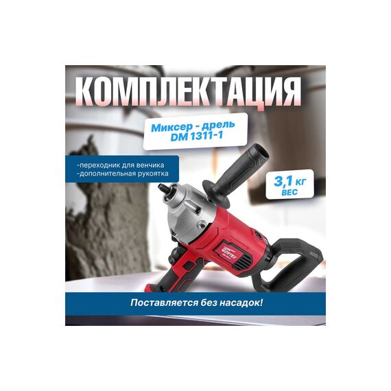 Миксер-дрель WORTEX DM 1311-1 0330044 – надежный инструмент подходящий для размешивания красок, лаков, клеев, строительных растворов.