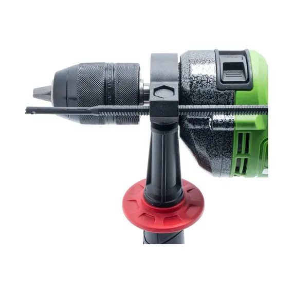 Рабочий орган надежно зажимает трехкулачковый патрон, при предельном диаметре хвостовика до 13 мм. Глубину выполняемого отверстия можно контролировать глубиномером.