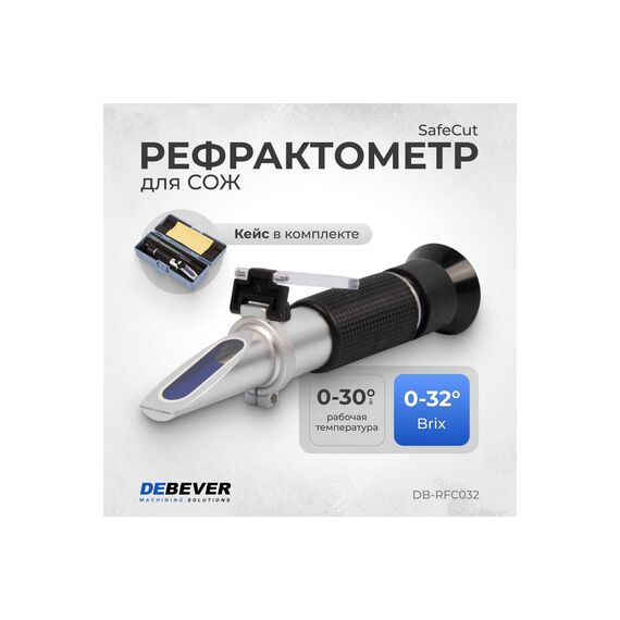 Рефрактометр SafeCut Brix DeBever DB-RFC032 предназначен для измерения концентрации СОЖ в водных растворах смазочных материалов, а также сахарозы в соках и концентратах.