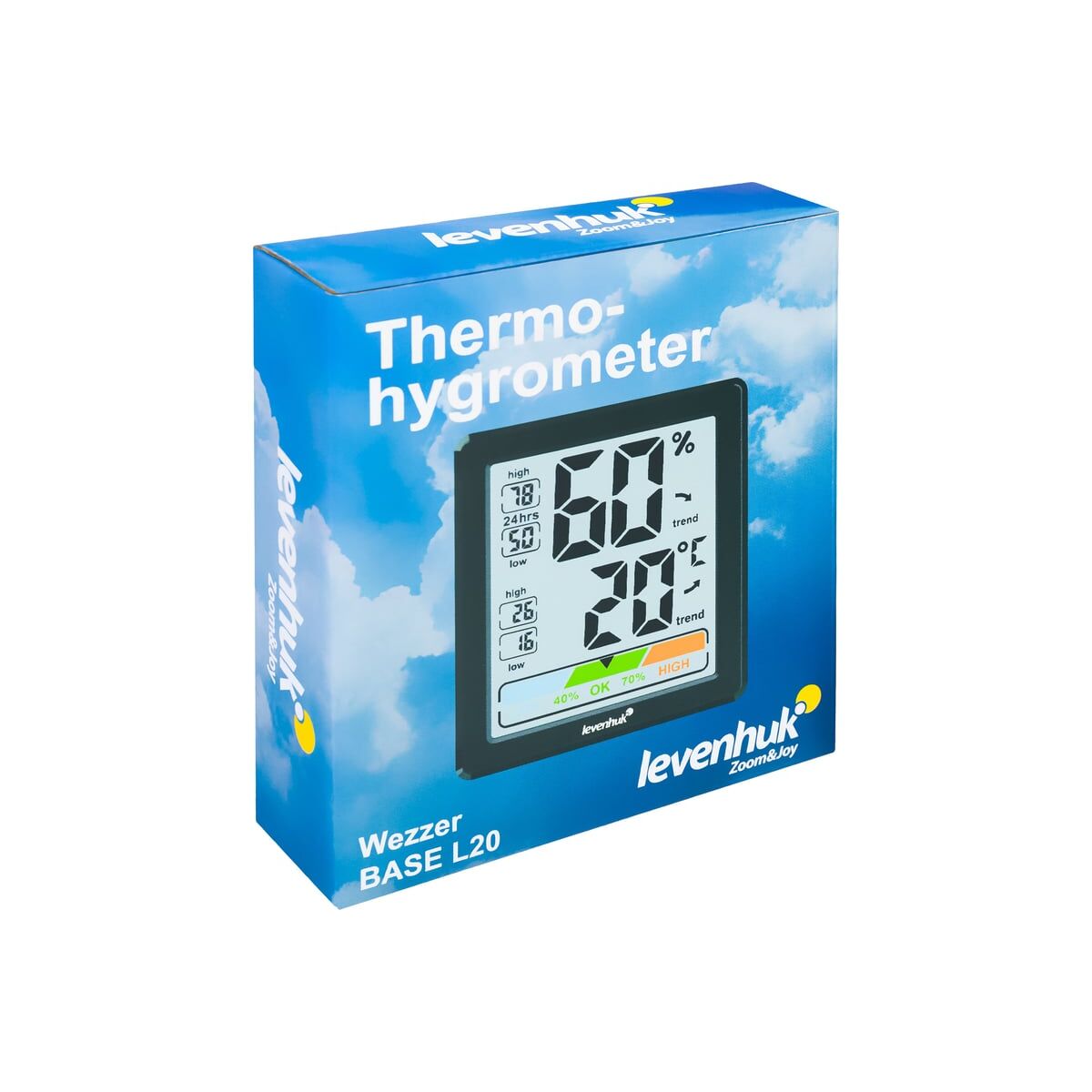 Levenhuk Wezzer BASE L20 – простой в управлении термогигрометр с базовым функционалом. Он измеряет температуру и влажность в помещении, отображая текущие значения, а также наибольшие и наименьшие показания за последние сутки. Кроме того, прибор позволяет отслеживать динамику изменения значений параметров и всегда быть в курсе состояния микроклимата. Модель отлично проявит себя в любом помещении, будь то спальня или детская, офис или дачный дом.