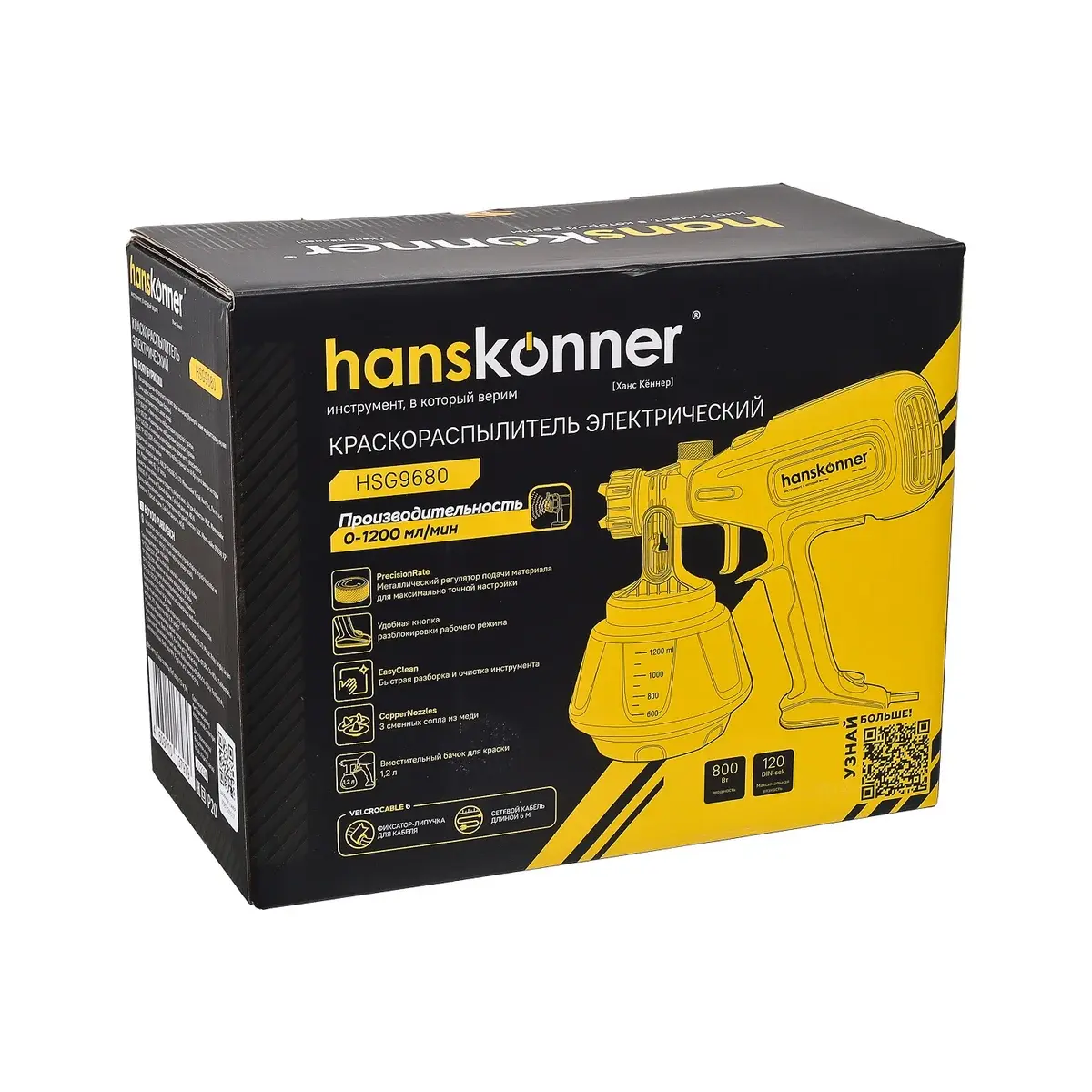 Hanskonner HSG9680 – универсальный электрический краскопульт. Отлично подходит для покраски фасадов зданий и ограждений, а также для проведения внутренних ремонтных работ. Позволяет эффективно работать в том числе и с наиболее вязкими материалами. Модель оснащена мощным 800 Вт электромотором и демонстрирует высокую, одну из лучших в классе, производительность в 1200 мл / мин.