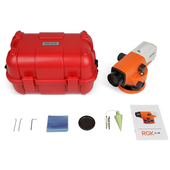 3.В комплект поставки входит кейс, в котором удобно хранить и транспортировать оптический нивелир RGK N-38.