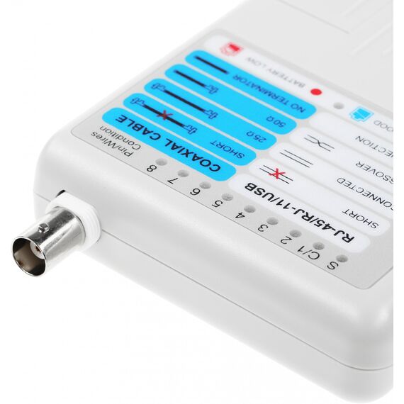 Тестер для витой пары 4в1 IEK ITK RJ45/RJ11/BNC/USB WH3468 предназначен для быстрого и эффективного поиска обрывов, коротких замыканий, перепутанных пар и проводников. Способствует обеспечению надёжной работы электросетей.