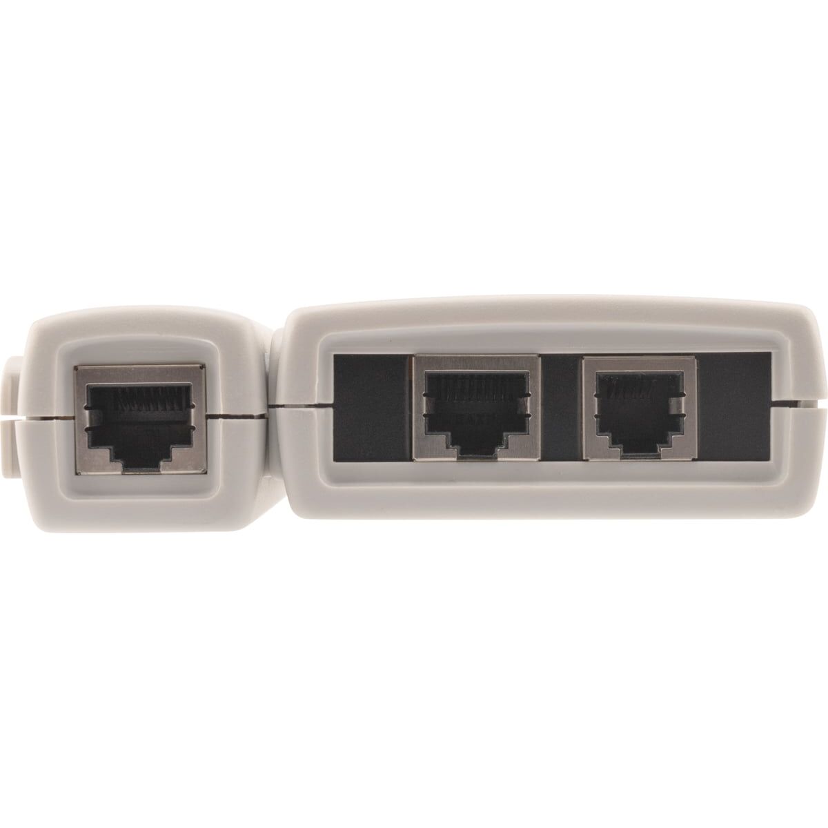 Тестер состоит из двух функциональных блоков — передатчика и приемника, которые подключаются к концам кабельной линии через разъемы RJ-45 или RJ-12. Светодиодная индикация есть на основном блоке прибора и на удаленном модуле.
