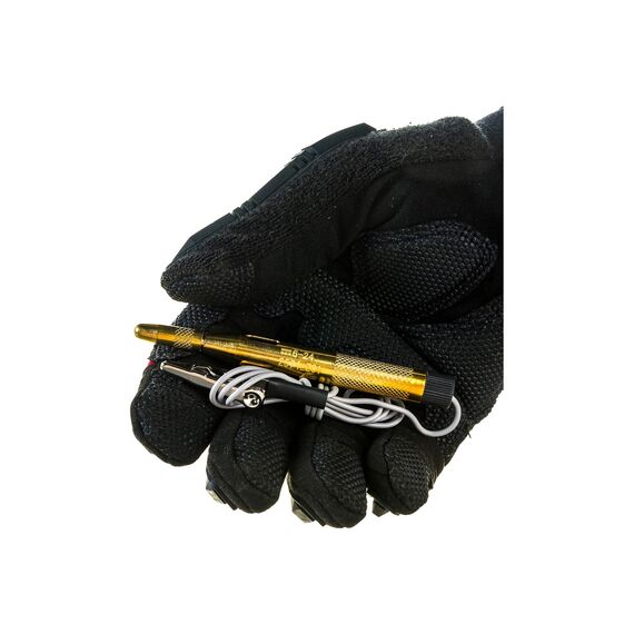 Пробник STAYER MAXElectro для автопроводки, латунный, 6-24В, 110мм 2574_z01 используется для прозвона проводки, контроля напряжения бортовой сети автомобиля, поиска неисправностей различного электрооборудования путем определения наличия напряжения в проводниках. При обнаружении напряжения в сети в диапазоне 6-24 В - загорается световой индикатор. Инструмент выполнен из латуни, обладает высоким рабочим ресурсом. Для удобства и безопасности ношения предусмотрены зажим и защитный колпачок.