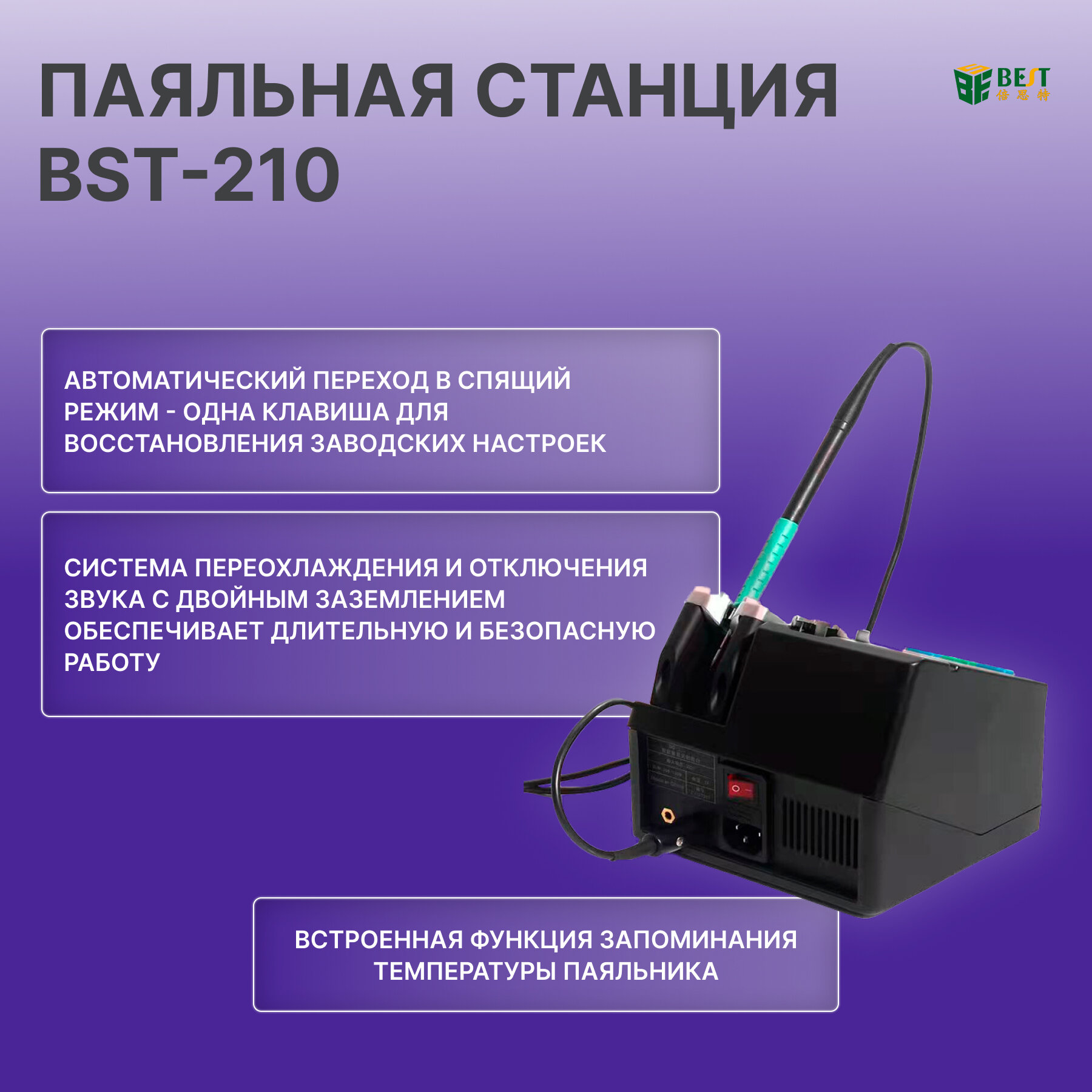 Интеллектуальный дизайн: BST-210 имеет интеллектуальный дизайн, который обеспечивает стабильную и стабильную работу, что делает его идеальным для деликатных электронных компонентов и точных работ.