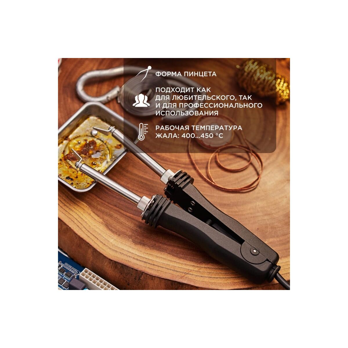 Паяльник-пинцет Rexant 12-0139 с керамическим нагревателем, 220В/48Вт